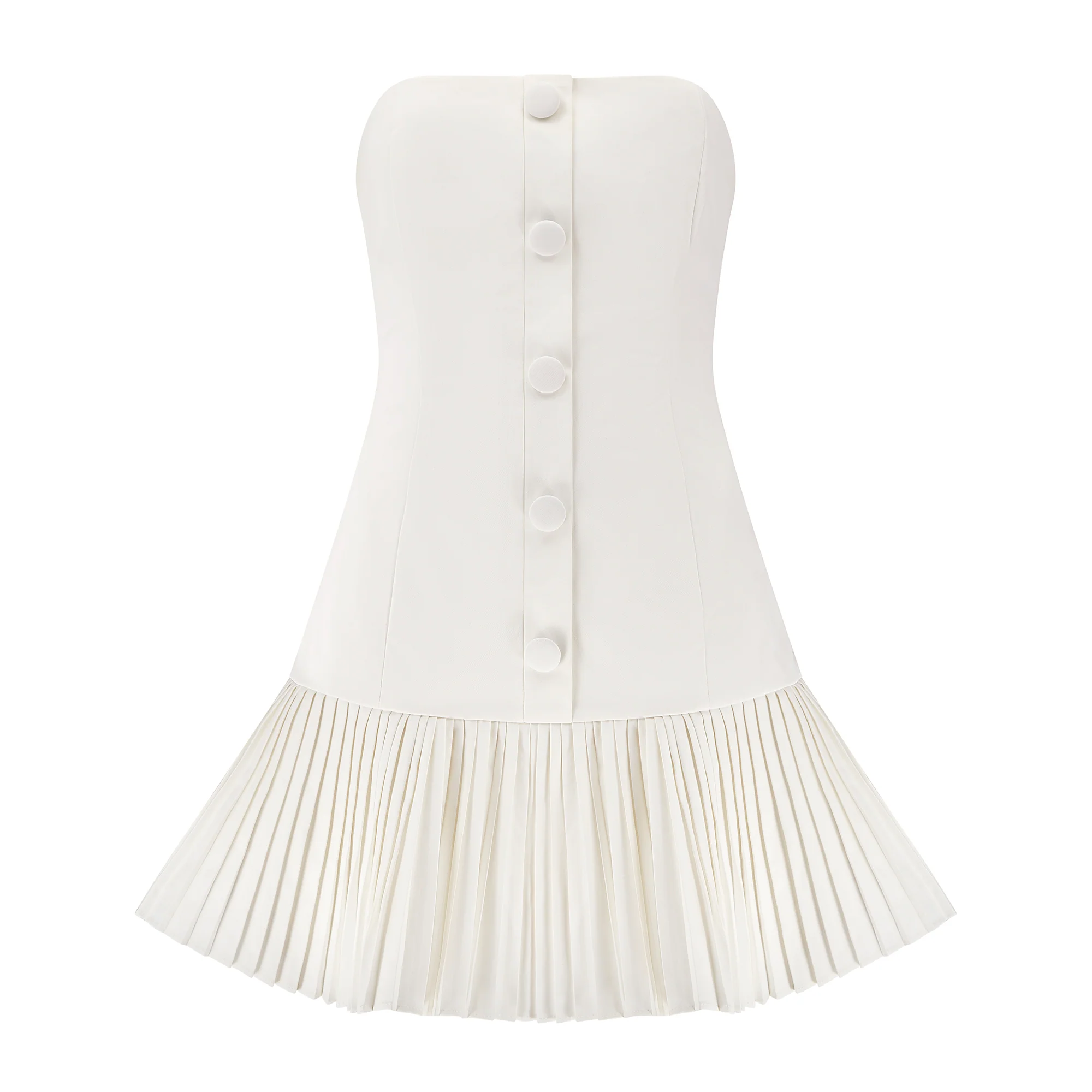Your summer staples, sorted. This crisp white dress is your holiday season statement. Bringing back our runway signature pleats in this sartorial strapless style, adorned with buttons for a touch of sophistication.