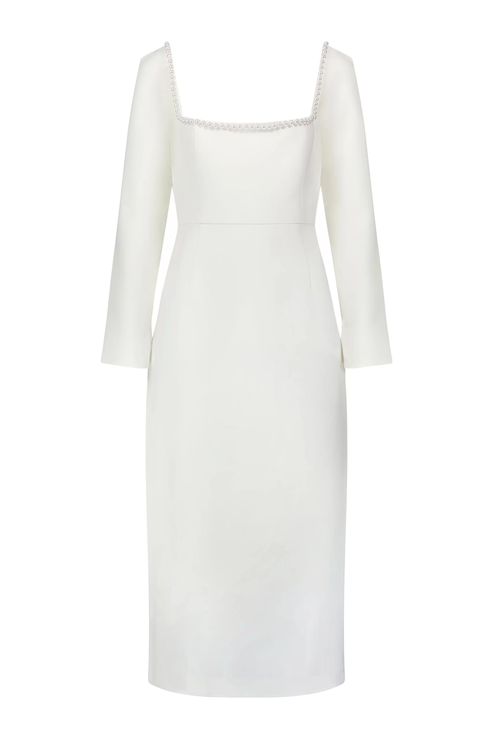 Does she seem familiar? We’ve taken our bestselling mini to midi lengths for your core collection. Cut from our long-adored signature fabric, the evolution of the pearls continues to build your capsule wardrobe of core party pieces. Crafted with a flattering and staple square neckline, adorned with a delicate pearl trim to add a touch of opulence to this statement neckline, it’s all in the details, complete with a tailored bodice.
