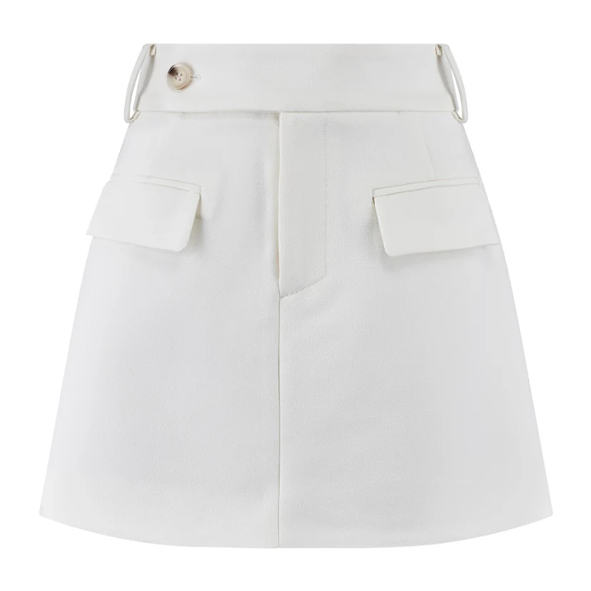 Mini skirts, but make it Odd Muse. Defined by its finishing touches of a button detail to get our statement cinch and our sophisticated flap pockets. Part of a chic three-piece, consider this crisp white iriteration your ultimate muse uniform for a sartorial statement.