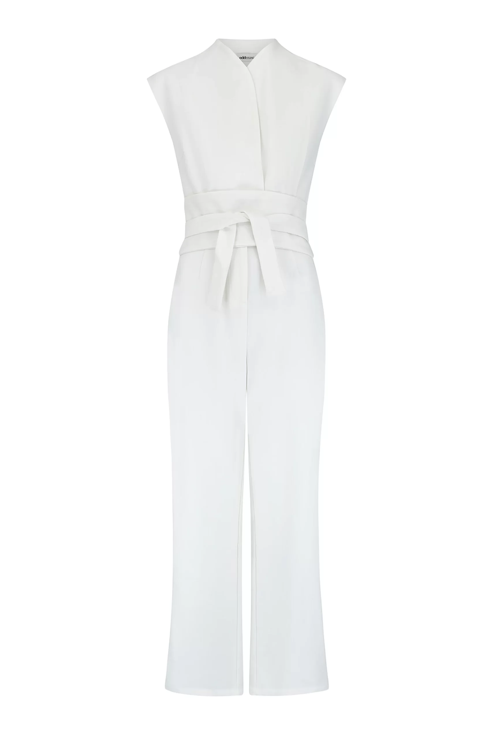 Where corporate meets chic. She’s a statement at the core, our ultimate sleeveless jumpsuit in crisp white is defined by our signature sleeveless shape for an understated look. The flared leg is complemented by the figure-hugging construction keeping sophistication at its core.