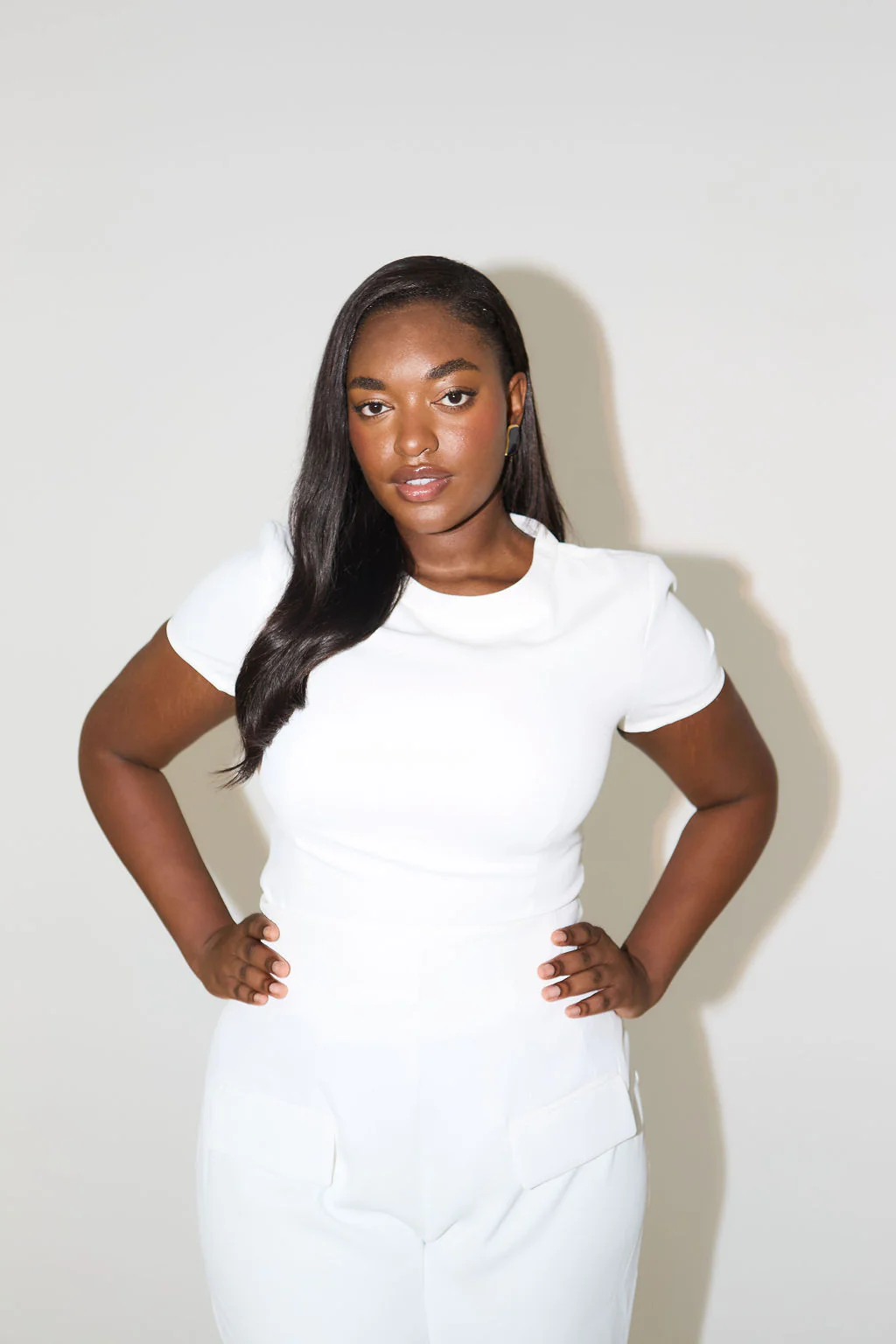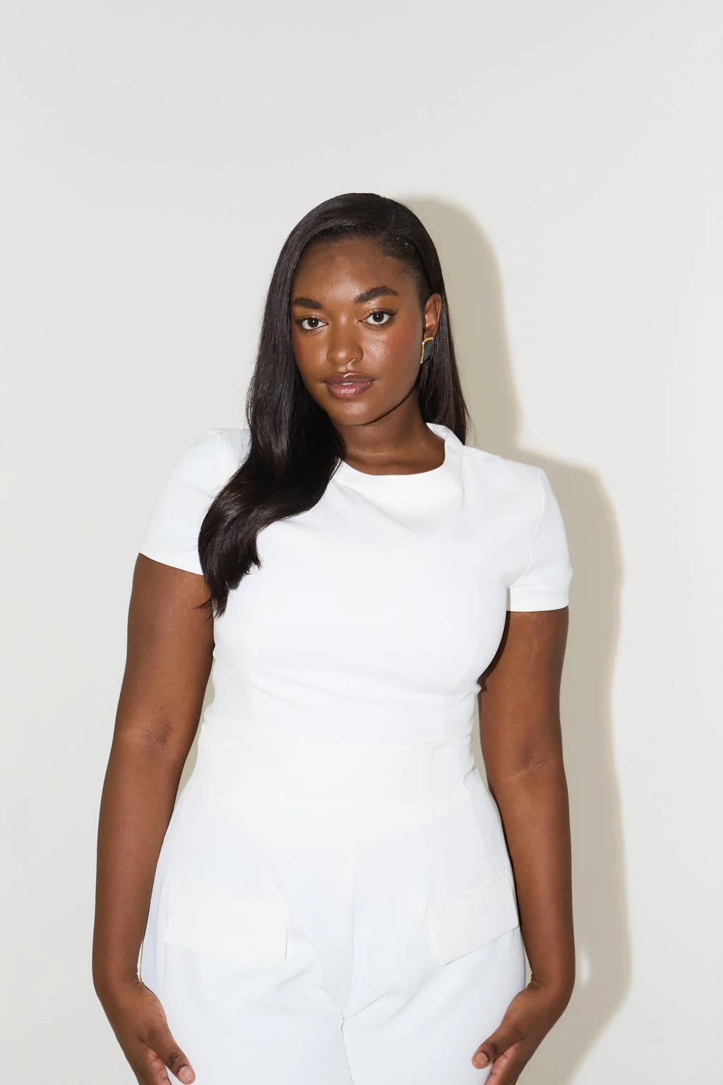 Make a simple statement with this core capsule piece. Elevate your everyday wardrobe with Odd Muse’s twist on tees. Crafted in our slinky yet structured signature fabric, this tee is beyond basic, defined by two front seams moulding the silhouette for a structured, understated look. Completed with a subtly curved hem completed with a hidden side zip tailored to effortlessly hug your figure. It’s all in the final touches for our muses.